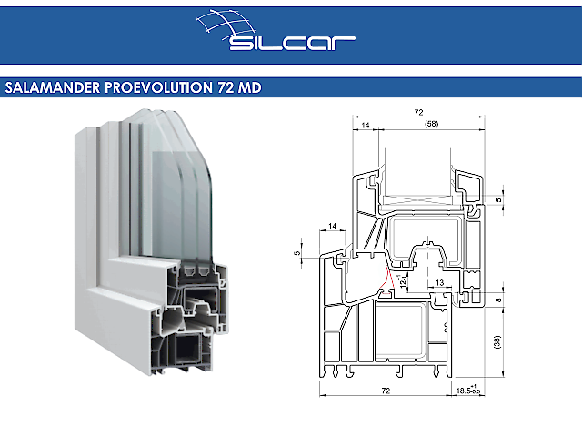 Disponibil intr-o gama variata de culori si finisaje decorative pentru toc si cercevea, sistemul se integreaza cu usurinta in diferite stiluri arhitecturale, de la clasic la modern. Salamander proEvolution 72 MD reprezinta o alegere practica si fiabila pentru proiecte care necesita un raport corect intre performanta, design si cost.)