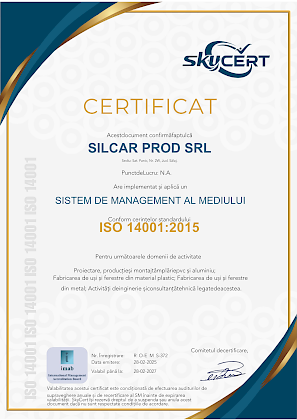In completarea acestor certificari de sistem, produsele SILCAR sunt sustinute si de certificate de conformitate emise de Institutul ift Rosenheim (Germania). Aceste certificari confirma performantele tehnice ale sistemelor utilizate si conformitatea acestora cu standardele europene aplicabile, oferind un nivel suplimentar de incredere in utilizarea produselor in proiecte rezidentiale si comerciale.